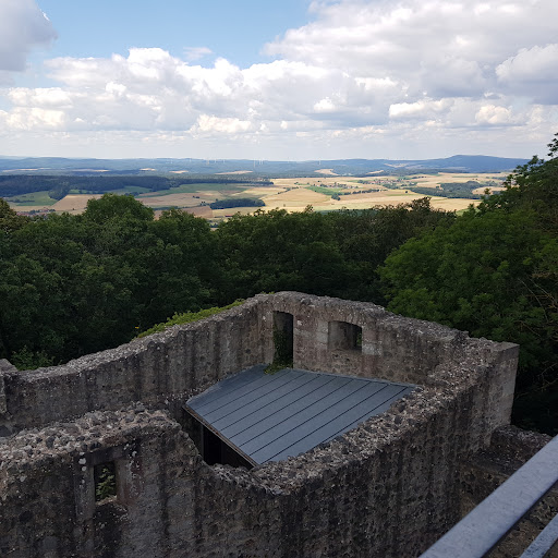 Nachdem wir die langen Steine besucht haben machten wir uns auf den ca 30-40 Minütigen Fußweg zur Burg(ruine) Hauneck. Man darf sich nicht auf Google Maps verlassen, dadurch wurden wir auf einen "Adventure" Weg geschickt, wie feindliche Raubritter auf dem Weg zur Burg. Es gibt einen normalen Weg hinauf, Anstieg ist ordentlich steil, Burgruine ist toll. Alle "Räume" sind beschriftet mit Hinweistafeln, Kemenate, Turm usw. Uns hat es sehr gut gefallen, der Aufstieg auf den Turm wurde mit einem windigen...