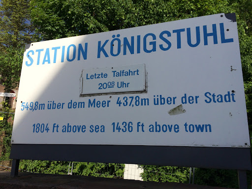 The place where bus 39 from Bismarckplatz reaches. Large free parking lot next to it.Best option to avoid paying for the cable car or for parking in city is to park for free here at Königstuhl ( parking tends to get full by 11 am on sunny weekends), hike down on the Himmelsleiter stone steps to castle and then on marked paths down to the city and then take the bus from Bismarckplatz back to here. Clean public toilets that are free of cost are next to the top station of...