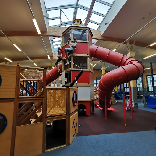 Der Hüpfburgenbereich ist absolut traurig. Das Ambiente ist trostlos und kahl. Man nehme eine Turnhalle, stelle ein paar an sich schöne Hüpfburgen in verschiedenen Designs rein und das war es. Da gibt es erheblichen Bedarf an Deko und Innengestaltung. Da könnte man konzeptionell richtig die Sau raus lassen, nutzt die Möglichkeiten aber nicht.