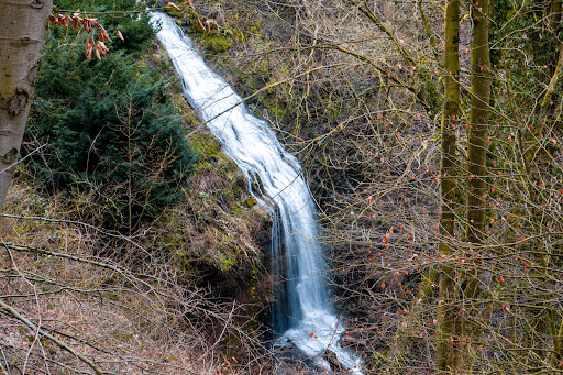 Leider ist der Wasserfall nur âaus der Ferneâ zu betrachten - hierzu ist eine kleine Aussichtsplattform oberhalb im angrenzenen WaldstĂŒck gebaut worden.