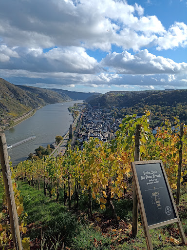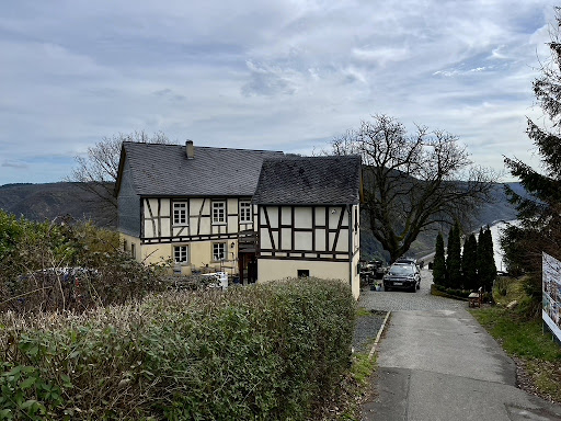 Read moreDie Lokalität, welche als Drehort für die Fernsehserie "Heimat" diente, erreicht man von Oberwesel mit dem Auto Richtung Niederburg (einige Parkplätze sind oberhalb des Hauses vorhanden) oder aber auch zu Fuß durch die Weinberge. Von der Terrasse hat man einen schönen Blick auf den Rhein. Diesen Blick hat William Turner in einem seiner Gemälde eingefangen. Es gibt eine Außengastronomie. Im Angebot sind Getränke, Kaffee und Kuchen sowie regionale Gerichte. Die Bestellung muss man an einer Theke abgeben und auch direkt bezahlen. Das Essen wird dann von einem Kellner an den Tisch gebracht. Als ich eine Bestellung aufgeben wollte, hatte sich schon eine Schlange vor der Theke gebildet. Der Kellner kam vorbei und meinte er komme sofort. Statt unsere Bestellung aufzunehmen rückte er einige Stühle auf der Terrasse gerade. Es erschien dann aber doch noch eine freundliche Dame und wir wurden schnell bedient. Das Angebot ist eher hochpreisig. Für 2 Stücke Blechkuchen und 2 Heimatkaffee habe ich 18 Euro bezahlt. Der Kuchen war sehr lecker. Der Kaffee war furchtbar dünn. Eher heißes Wasser mit...