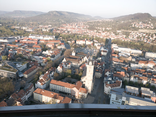 Die Büros und Geschäftszentren tragen wesentlich zum wirtschaftlichen Leben der Stadt bei. Darüber hinaus bietet der Aussichtspunkt auf der Spitze des Gebäudes die Möglichkeit, einen atemberaubenden Panoramablick über Jena von oben zu genießen.