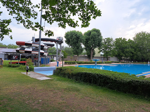 One of our favorite pools in Karlsruhe. We recently visited on the last Sunday in July. It was crowded but not extremely, and we had a great time. There are huge amounts of shaded grass (bring a picnic blanket), a nice partially-shaded splash pool for younger children, main pool with a water slide, tunnel-style water slides for older children / adults, and a lap pool. There is also a fun barefoot trail, a sandbox, and a small playground. We have never had any negative experiences here. Be sure to bring a 2 € coin for the lockers (you get...
