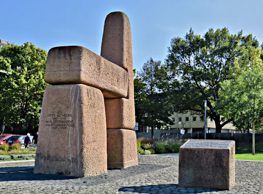Der Entwurf für das privat finanzierte Denkmal stammt von dem Kuseler Künstler Horst Schwab. Er gewann den 1979 unter dem Jury-Vorsitz des Landtagspräsidenten Albrecht Martin stattfindenden bundesweiten Wettbewerb. Das Denkmal wurde im Sommer 1981 von dem Hettenleidelheimer Bildhauer Theo Rörig im Steinbruch der Firma Wassum in Miltenberg am Main ausgeführt und am Moselufer aufgestellt. Am 7. Oktober 1981 erfolgte die Einweihung in den Moselanlagen (Peter-Altmeier-Ufer).