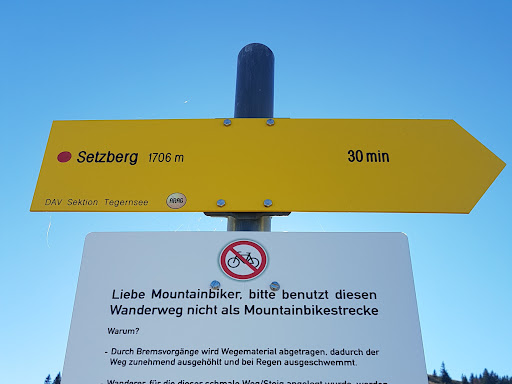 Der Setzberg ist der unscheinbare kleinere Bruder des Wallbergs, den man allzugerne vergisst. Weil man auf den Setzberg nicht mit einer Gondel kutschiert wird, weil er kein Restaurant an seinem Fuße beherbergt und weil er um knappe 20 m niedriger ist. Während sicherlich 90 % der Besucher an der Gabelung beim Alten Wallberghaus zwischen Setzberg und Wallberg zum Wallberg weitergehen, wählen 5 % direkt wieder den Abgang und 5 % wählen den Setzberg. Gute Wahl: Nicht annähernd so viel los da oben, etwas schneller erreicht und genau denselben, wenn nicht sogar den besseren Ausblick auf Tegernsee und die Täler. Der Weg zum Gipfel führt über teils steile schmale Trampelpfadserpentinen und weil es hier keinen Wald gibt, hat man permanent den tollen Ausblick ins Tal und das komplette Panorama über den Tegernsee. Aber ab Wallberghaus ist der Weg nicht mehr gekiest. Dieser ist gerade in den Jahreszeiten außer Sommer sowie nach Regen gerne matschig und entsprechend rutschig, weil der Aufstieg von der Talstation auf der Nordseite liegt.