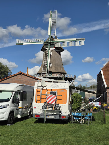 Read moreCamperplaats achter de molen. Heerlijk gestaan op de grote lap grond. Niet alleen voor campers, ook voor caravans en tenten (meest voor 1 of 2 nachten) Ruime toiletten en douches. De loosput konden we niet vinden. Prima overnachtingsplaats voor een bezoek aan Leer (20 minuten fietsen) of een wandel/fietstocht Was niet makkelijk de eigenaar te vinden...