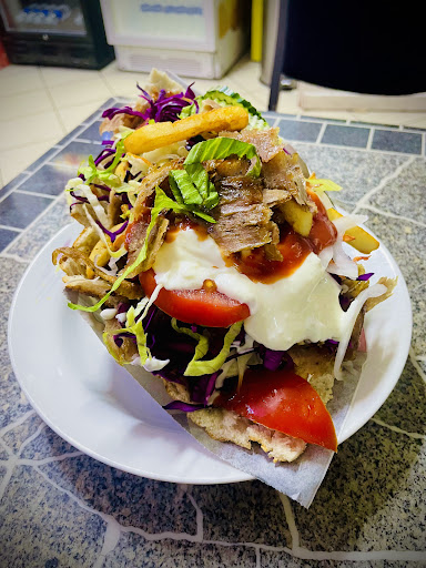 Am Ende hatte ich Pommes auf meinem Teller, obwohl ich sie nicht wollte. Außerdem wurde das Fleisch in der Mikrowelle aufgewärmt, was das Fleisch warm, aber auch trocken machte. Ich war an einem Wochentag gegen 22 Uhr dort – obwohl der Laden bis 0 Uhr geöffnet hat, schien die Qualität zu dieser Uhrzeit schon nachzulassen.