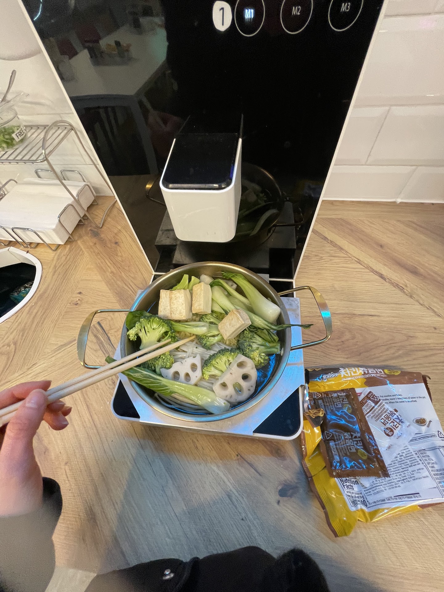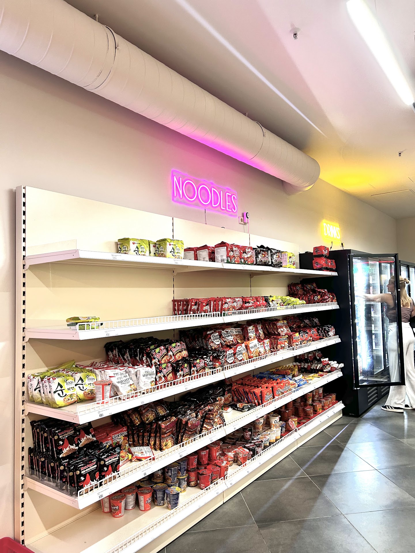 Das war jut, draußen peitscht der Eckel, grau und nass, die Reiselust aus dem Gesicht. Da gibbet nichts besseres als eine heiße Suppe,die Auswahl ist angenehm divers, und bietet Altbekanntes und selten Gesehenes. Da entdeckt man das Gesicht eine K-pop-stars und um die ecke gibbet Knabberzeugs. Ich hab mir also so'ne packung Nudeln geschnappt und bin zur Kasse. Super freundliches Personal hat meine aufmerksamkeit auf die notwendigen Schüsseln geöengt die praktischerweise bei den Toppings stanen...naja meine Aufmerksamkeit is nich so dolle, aber die Toppings, Gamechanger. Wie ein Schneekönig hab ich mich also eingedeckt und bezahlt. Die Stationen zur Zubereitung sind super sweet dekoriert und die Spiegel sind nen richtig cooles awarenesskonzept, dat werd ich im Hinterkopf behalten. Die Anleitungen waren einfach top. Überhaupt kann jeder der nicht viele worte wechseln möchte sich dort ganz selbstständig bewegen. Ich hatte trotzdem die unaufdringliche Hilfe des Personals an meiner Seite, das bringt sone gewisse Lostheit auch mit sich. Da bin ich nur dankbar für. Essen lecker, magen warm, löpt. Oh uh hey, wenn ihr cool sein wollt, wischt eure Tische ab, nicht nur das es auf dem aufräumzettel steht aber es ist nen Instantramen-shop....das sind ja keene...