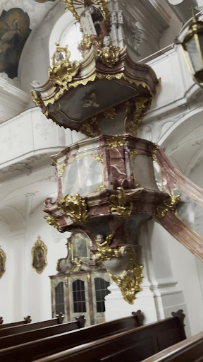 • The high altar by Franz Georg Hermann from the 18th century is a significant piece of baroque artistry. • The pulpit created by Joseph Wagner in 1751 is noteworthy for its craftsmanship and historical significance. • The organ, originally built in 1926 and housed in a rococo case from 1755, along with the Marienorgel from 1993, adds an auditory grandeur to the church. • Perhaps most striking is the ceiling painting by Waldemar Kolmsperger, dating back to 1922. It had to be restored after a collapse in 1987 and now stands as a testament to the resilience and beauty of the church .