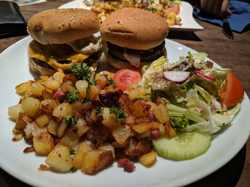 Read moreIch bewerte selten. Hier aber direkt mal eine Warnung! Auf die Getränke mussten wir gar nicht mal so lange warten, wie es in den anderen Berichten geschildert wurden. Vielleicht aber auch, weil wir gegen 18:30 Uhr zu den ersten Gästen gehörten. Das Essen kam dann aber um so später. Das hausgemachte Fladenbrot als Vorspeise kam dann endlich, als wir uns nach dem 2. Getränk schon mit dem Gedanken befassten, das Lokal zu verlassen. Es war mehr Pizza als Fladenbrot. Die einfache Version war geschmacklos, bei der Luxusvariante haben schlechter Feta und geschwärzte Discounter Oliven vergeblich versucht, Geschmack zu liefern. Hier ist es sogar den Tomaten gelungen, sich in den Vordergrund zu spielen. Wir bekamen dann später Schnitzel, die so durch waren, wie ich es noch nie erlebt hatte. Die Burger Patties waren stark durchgebraten. Der Boardwalk Empire lächelte mich mit ein aus püriertem Magerfleisch geformter Pattie trocken an. Mit ein paar Tropfen einer interessanten Soße war da auch nichts mehr zu machen. Da können selbst die Fastfood Ketten besser abliefern. Die Bratkartoffeln waren in Würfel geschnittene Kartoffeln ordentlich gesalzen und zu kalt und zu lange frittiert. Sehr fettig!!! Insgesamt waren wir sehr enttäuscht, zumal das Lokal auf dem ersten Blick sehr...