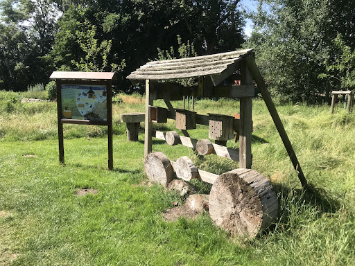 Herausgekommen ist eine abwechslungsreiche und sehr familienfreundliche Runde für die man ca. 20min aufwärts einplanen kann. Der Weg geht sowohl über einen Holzpfad als auch über gehäckseltes Holz sowie über Gras. Mit dem Kinderwagen muss man wohl etwas flexibel sein. Besser die Babytrage verwenden, wenn die Kinder selbst noch nicht laufen können. Gesäumt wird der Weg mit vielen Informationstafeln aber auch geniale Ideen zur Veranschaulichung für Kinder, sodass den Eltern eine sehr gute Eselsbrücke für die Erklärung gegeben wird, z.B. zum Thema Biodiversität.