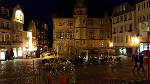 Read moreMitten in der historischen Altstadt von Marburg, wie sollte es auch anders sein, befindet sich der Oberstadt-Markt. Das dominante, auch villeicht schönste Gebäude stellt das Rathaus dar. Eine kleine Schautafel am Martbrunnen weißt darauf hin, an dieser Stelle würde das Land Hessen (1248) gegründet. Heutzutage ist von den ehemaligen Markttreiben nicht viel übrig geblieben, bei schönen Wetter laden einige Lokale zum Verweilen ein (die harten auch bei Regen Im...