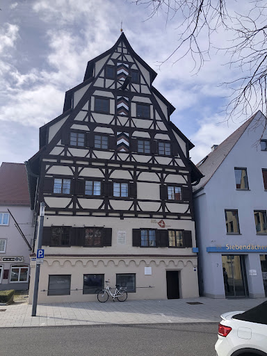 Read moreAls ehem Gerberhaus wurde 1601 dieser schöne Fachwerkbau errichtet. Das 1.Obergeschoss wurde ueber Rundboegen vorkragend gebaut, wie einige Gebäude in Memmingen. Das gestufte Dach ermöglichte den Platz zum aufhaengen der gegerbten Lederstuecke. Es zählt zu den...