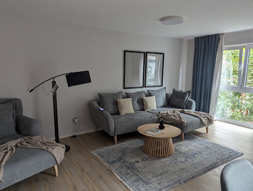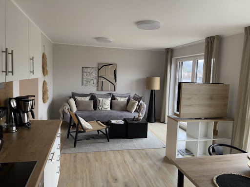 Die luxuriös ausgestattete Ferienwohnung MAISON SAARSCHLEIFE METTLACH (Penthousewohnung)lädt auf ambitionierte Weise zum mehrtägigen Verweilen ein. Eingebettet in einer klassischen Wohngegend Mettlachs, dennoch zentral an Verkehrswegen liegend (erwähnenswert: Schiffsanlegestelle an der Saar in wenigen Minuten fußläufig erreichbar), steht das hübsch sanierte und mit allerlei modern-technischen Raffinessen ausgestattete Gebäude dem geneigten Reisenden zur Verfügung, vor allem, wenn mit dem PKW angereist wird. Das wäre ohnehin von Vorteil, da Verpflegungseinkäufe erst in einigen Kilometern im Umkreis zu erreichen sind. Beruhigt läßt es sich auf Entdeckungstour fahren, ist doch bei der Rückkehr der eigene Parkplatz direkt am Haus gesichert. Die modern eingerichtete Wohnung - ideal für den Aufenthalt zu zweit - bietet uneingeschränkt gewohnten heimischen Komfort. Moderne Küchenzeile, mit allem ausgestattet, was man zum Speisezubereiten benötigt, selbst Verbrauchsaccessoires wie Mülltüten und Spülmittel finden sich in der Ausstattung. Angenehm gestaltet sich auch das Interieur durch das Design von Villeroy und Boch. Das weiß man vor allem im Badezimmer zu schätzen. Ob indirekt beleuchteter Sensor-Spiegel, Armaturen oder gar die großzügig gestaltete Regen-Duschfläche, nicht zu vergessen die angenehme Fußbodenheizung, lassen jeden Tag des Aufenthaltes zufrieden lächeln. Die Raumtemperatur kann auf Wunsch an den in jedem Raum befindlichen Regelschaltern verändert werden, sichtbare Heizungskörper finden sich erfreulicherweise nicht. Das Schlafzimmer verdient ebenso Beachtung, da es - wen es danach dünkt - den Abend mit einer Filmunterhaltung über den funktionellen Wand-TV ausklingen läßt. Ein besonderes Lob verdient in diesem Zusammenhang die wirklich innovative Installation des Wohnzimmer-TV. Drehbar in jede Richtung des Aufenthaltes im Raum. Man kann also am Frühstückstisch seinem Fernsehlaster genauso frönen, wie es am Abend das gemütliche Schauen vom bequemen Sofa aus möglich ist. Und der Unterhaltungsmöglichkeit ist dank der vorausschauenden Freundlichkeit des Gastgebers, Streamingdienste ins gut funktionierende WLAN einzupflegen, kaum eine Grenze gesetzt. Alle namhaften Anbieter finden sich im Menü und müssen auf Wunsch nur durch eigenes Einloggen aktiviert werden. Erwähnenswert ist auch der moderne Kunstbezug verschiedener Dekorationselemente in der Ferienwohnung, beweist es doch, dass Kunst immer und grundsätzlich im Auge des Betrachtenden liegt. Alles ist auf subtile Weise aufeinander abgestimmt. Unser Aufenthalt fand leider in der ersten Novemberwoche bei ausschließlich trübem Wetter statt. Und das hatte schon seinen eigenen Reiz. Wie angenehm muß es erst dort sein, wenn die Sonne scheint ... Fazit: Danke an den Gastgeber für diesen sehr angenehmen und empfehlenswerten Aufenthalt im Maison Saarschleife. Gern buchen wir zukünftig erneut einen...
