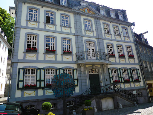 Read moreRepräsentatives Wohnhaus eines wohlhabenden Monschauer Tuchmachers, erbaut Ende des 19. Jahrunderts. Heute befinden sich ein Kunst- und Kulturverein und ein standesamtlicher Raum in dem Gebäude. Eine sehr schöne Idee ist der sehenswerte Hochzeitsbaum vor dem Haus. Die Brautleute konnten ihre Hochzeitsdaten auf den Glasblättern des Baumes eingravieren lassen. Jetzt, wo alle Blätter belegt sind, ist der Eintrag in ein Hochzeitsbuch im...
