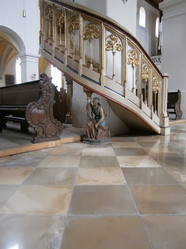 Die Kirchenführung (Verein Tradition und Brauchtum) war lohnenswert. Zu sehen gab es ein phänomenal filigran gearbeitetes romanisches Portal, im Kirchenschiff Hauptwerke des gotischen Meister-Bildhauers Leinberger, ein außergewöhnlich filigraner Schnitzaltar aus Lindenholz mit Ergänzungen von Christian Jorhan (leider wurde die gotische Naturholzfassung farbig übermalt in der Barockzeit), und ein Monumentalkruzifixus ebenfalls von Leinberger. Die neue Orgel aus den Siebziger Jahren des zwanzigsten Jahrhunderts scheint ein außergewöhnlich gutes Instrument zu sein. Sankt Kastulus war ein Speisemeister am Hof des römischen Kaisers Diokletian, und wurde wegen seines Glaubens (er hatte den Papst zu einer Privatmesse in sein Haus geladen) lebendig begraben. Seine Attribute sind der Palmwedel (als Siegeszeichen der Christlichen Märtyrer, Schwert (als Kämpfer für den Christlichen Glauben) und Spaten (als Hinweis auf seine Todesart). Sankt Kastulus ist der Schutzpatron...