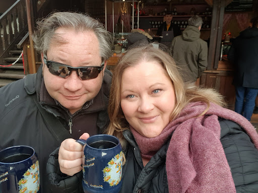 The market consisted of different food stalls selling a variety of savoury things - various sausages in combination with different toppings and sauces, and sweet things. Beer and mulled wine was a given and the market reminded us of similar places in Prague and Budapest at Christmas. Everything on the ground floor was outdoor and very cold!