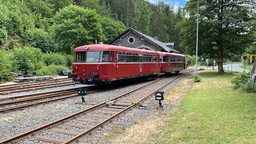 Read moreWir haben die Bahn heute als Schlechtwetteralternative genutzt. Zwei gut erhaltene Schienenbusse fahren im Verbund. Sicher liegt in der Arbeit mit der Technik die Kernkompetenz des Vereins. Auf der Fahrt nach Nordhalben durch das nicht so wildromantische Rodachtal ( haben laut Flyer mehr erwartet ) fühlten Wir uns als störend für die laut schwatzenden anwesenden Vereinsmitglieder. Die im Flyer versprochenen Informationen gab es nicht. Das Umfeld und die Angebote wirkten lieblos. Die Rückfahrt von Nordhalben verlief ähnlich...