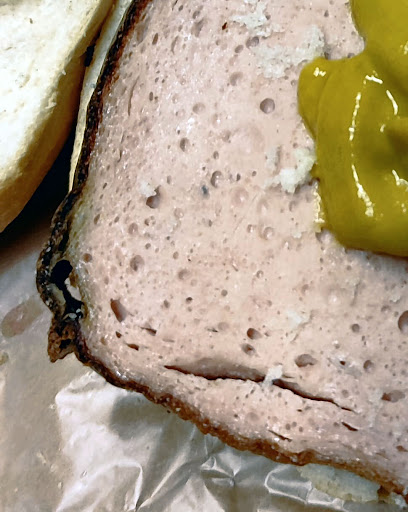 Die Dame an der warmen Fleischtheke wirkte äußerst unfreundlich, was ich zwar bedauere, aber nicht unbedingt als entscheidend erachte, solange die Qualität stimmt. Doch genau das war nicht der Fall. Als ich meine Bestellung aufgab, nahm sie ein kleines, verschrumpeltes Stück Leberkäse aus der Theke und schnitt zwei Scheiben ab. Die erste Scheibe sah auf den Bildern, die ich gemacht habe, bereits recht vergammelt aus – wahrscheinlich weil sie schon lange dort lag. Anstatt diese unappetitliche Scheibe wegzuschneiden und auszusortieren, wurde sie einfach ins Brötchen gelegt und verkauft.