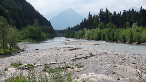 Juli 2024 Wir sind den Stillachdammweg entlang der Wiese gegangen. Wir wollten zu den Sandbänken am Rande der Wiesen zwischen Straße nach Faistenoy/Fellhorn und Wiesenwanderwege Oberstdorf.