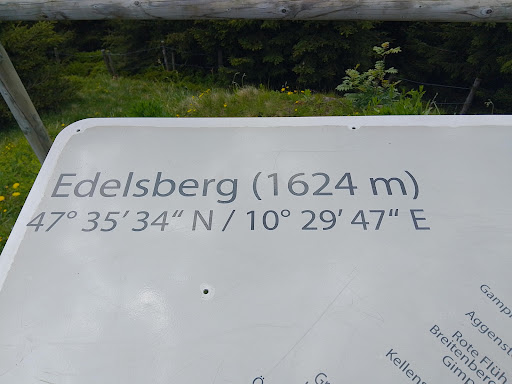Im Süden direkt an den Alpspitz schließt der 1624 Meter hohe, bewaldete Edelsberg an. Dessen Gipfel ist von der Bergstation Alpspitzbahn oder dem Sportheim aus über 170 Höhenmeter in etwa einer halben Stunde ohne Schwierigkeiten...