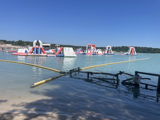 Read moreThis is my new favorite place. Enjoyed this lake immensely. I came with my husband and children (4 and 11). We unfortunately were late in making reservations, so we were unable to get one of their daybeds or chairs. However, we were still prepared and had a sun tent, towels, and a cooler of food and drinks. We rented one of the paddle boats with the slides which was so fun. There is an aquapark, and rentals for a variety of boats and paddleboards. The lake is calm and good for small children...there is also a family area of the beach with a playground. You can reserve a chair/bed online next to this with a good view of the beach while the kids play. There was great house music lightly playing and a super fun vibe, with a diverse crowd. I'm not sure what minerals are in the lake which make it so blue, but after swimming your skin and hair is left feeling soft and refreshed...not your average murky lake, and the bottom is all sand! The lifeguards/medics were super caring and professional, treating my husband after he stubbed his toe, and shuttling us back to our car afterwards(thank you!) Staff at all the food trucks/reataurants were friendly and many food options (german, Turkish, italian). Lots of options for cocktails if you want to imbibe. The park is well worth the price...make sure you bring plenty of cash, as the aqua park, boat rentals, and several food/drink trucks did not accept credit, or machines were down. Lastly, If you are on a budget skip booking the day bed/chairs, and just bring a...