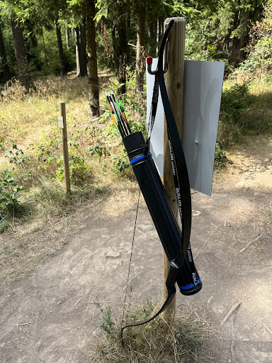 Read moreDie gesamte Location ist gut besucht und es ist daher sinnvoll, Termine online zu buchen. Der Bogenparcour ist ca 2 km lang und besteht aus 10 Stationen, an denen auf Scheiben und Tierattrappen geschossen werden kann. Etwas Zeit kann man für das Suchen der Pfeile einplanen, da diese gerne mal durch die Auffangnetze durchflutschen... ;-) Insgesamt haben wir zu dritt mit jeweils 4 Schuss pro Ziel 1,5 Stunden gebrauchen. Der Kletterpark hat diverse Parcoure in verschiedene Schwierigkeitsstufen. 3 davon wurden von uns Ungeübten in etwas über 2 Stunden geschafft. Es gibt 3 Baumhäuser zum Übernachten. Wir haben eine Nacht im "Buchennest" verbracht. Hier ist es nicht unbedingt nötig, Isomatten mitzubringen, da es eine grosse Liegefläche gibt. Trotz nächtlichen kräftigen Regen war alles trocken in der Hütte.