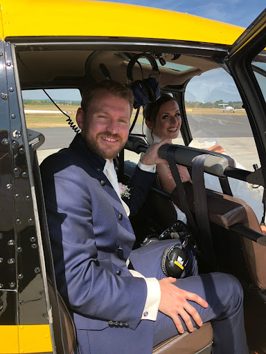 Wir haben unseren Hochzeitsflug mit Air Lloyd gebucht und sind bis heute noch schwer begeistert von diesem tollen Unternehmen. Vom ersten Telefonat an bis hin zur Durchführung des Fluges verlief alles höchst professionell und dennoch hatten wir zu keinem Zeitpunkt das Gefühl nur ein Kunde von vielen zu sein. Auch die Kommunikation und Stimmung unter den Mitarbeitern war super, was für mich immer wichtig ist. Der Hubschrauber war ein Traum und größer als ich erwartet hatte (sogar in meiner Lieblingsfarbe Gelb :)). Auch der Flug selbst hat großen Spaß gemacht und ist unser absolutes Highlight des Tages gewesen. Der Ausblick auf die Landschaften war atemberaubend und auch die erstaunten Gesichter unserer Gäste beim Anflug werden unvergesslich bleiben. Es sprechen uns bis heute noch alle darauf an, da unsere Hochzeit dadurch zu einem Event wurde. Nach der Landung hatten wir noch die Möglichkeit Fotos mit unseren Gästen vor dem Hubschrauber zu machen. Ich kann es jedem Paar nur empfehlen! Es macht einen riesigen Unterschied!