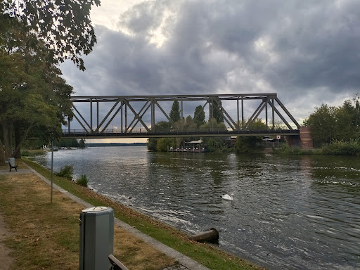 Read moreEine schon von Weitem sichtbare Eisenbahnbrücke, mit einem durch stabile Gitter aus Eisen abgetrenntem Bereich für Fußgänger und Radfahrer. Der Aufgang ist über Treppen mit seitlichen breiten Schienen, um dort Fahrräder hochschieben zu können, von beiden Uferseiten möglich. Viele Schlösser von Liebenden wurden am...