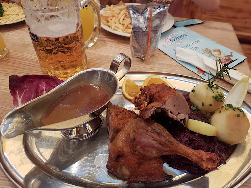 Read moreWir sind wirklich enttäuscht. Das Bier ist zwar lecker, aber wenn die Bedingungen nur 2mal innerhalb von 5 Stunden am Tisch vorbeikommen, kommt man nicht auf seine gezahlten "Märkle". Geschirr oder Gläser mussten wir selbst abgeben, damit unser Tisch nicht im Geschirr versinkt. Auch Getränke sind schneller bestellt wenn man Sie sich innerhalb eines Halben-Stunden-Marsches selbst besorgt. Allegmein herrscht das Gefühl, als wäre man auf einem Fest, das von Touristen als "Volksfest" verstanden wird, mit dem wahren Wasen aber recht wenig gemein hat.Bei Zelteintritt um 17 Uhr und direkter Essensbestellung kann mit Essen um 20:00 Uhr rechnen, wobei die Hälfte der Karte schon ausverkauft ist. Wer es mag dumm angemacht zu werden, der ist hier richtig. Allen anderen würden wir empfehlen ein anderes Zelt auf dem Cannstatter Wasen auszuchen. Die Stimmung allgemein ist nicht gut, vielleicht liegt es daran, dass man die Band nur in den ersten Reihen hört und der Rest nur erahnen kann, welches Lied gerade gespielt wird. Vielleicht war das der Grund, warum viele Tische vorzeitig verlassen wurden. 70€ wären besser imvestiert in 4...