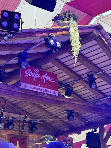 Das Sonja Merz Zelt ist ohne Zweifel eines der besten Zelte, das ich auf dem Cannstatter Wasen besucht habe. Schon beim Betreten spürt man die besondere Atmosphäre, die sich aus Tradition, ausgelassener Stimmung und einer herzlichen Gastfreundschaft zusammensetzt. Das Zelt ist beeindruckend groß, aber trotzdem gemütlich gestaltet, was zu einer besonders einladenden Stimmung beiträgt.