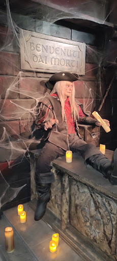 S'agissant d'une attraction atmosphérique, elle n'est pas terrifiante à visiter, l'horreur reposant davantage sur l'histoire mise en scène que sur des effets. Certains visuels sont cependant inquiétants (la vierge de fer enfermant un invité, la descente aux enfers), bien aidés par l'excellente bande originale accompagnant tout le parcours, qui conserve le morceau culte ''Pavane per Laudomia'' réarrangé lors de la scène du bal. Une véritable montée en tension s'observe au fil du parcours, qui devient de plus en plus inquiétant jusqu'à la descente finale absolument magistrale. L'attraction est majoritairement dénuée de toute dimension comique, hormis quelques détails (le pendu dans la stretching-room, l'homme à tête de licorne), ce qui permet de la prendre davantage au sérieux que la version précédente. Je vous la...