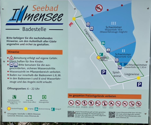 Read moreDas Freibad am Ilmensee ist absolut empfehlenswert. Es liegt idyllisch direkt am See, der Zugang ist über einen Steg sehr einfach und für die kleinen Besucher gibt es einen abgetrennten Nichtschwimmerbereich, der von den Bademeistern auch streng bewacht ist, damit kein Nichtschwimmer plötzlich im tiefen Wasser landet. Ein abgetrennter Sprungbereich bietet rasante Abwechslung und einige Wasserklettergeräte laden zum toben ein. Das Highlight für meinen Sohn war eine für Schwimmer erreichbare Plattform im See, von der man aus ebenfalls herrlich ins Wasser springen konnte und irgendwie war die Plattform der Treffpunkt für alle. Die Gastronomie ist preislich und qualitativ gut und bietet mit kühlen Getränken und kleinen Snacks ein gutes Angebot. Da wir nach unseren Ausflügen oft noch schwimmen waren, ist das Angebot ab 18 Uhr zum reduzierten Preis rein zu kommen sehr interessant, wobei die Eintrittspreise mit 3,50 eh sehr moderat waren. Das Wasser war herrlich klar und wenn wir in der Nähe sind, ist der Illmensee fester Programmpunkt für...