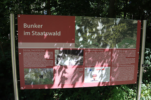 Read moreGanz schön zum Laufen. Der Staatswald an sich ist in Bezug auf Flora und Fauna ebenfalls einen Spaziergang wert. In Summe gibt es ca. 28 Bunker zu sehen, viele sind für die Überwinterung von Fledermäusen allerdings nicht zugänglich und entsprechend umgebaut. Bei den Bunkern handelte es sich um Bunker für die Lagerung von Waffen und Munition zu Zeiten des kalten Kriegs. Festes Schuhwerk von Vorteil. Teilweise starke Steigungen. Bunker an sich sind komplett leer und durch...