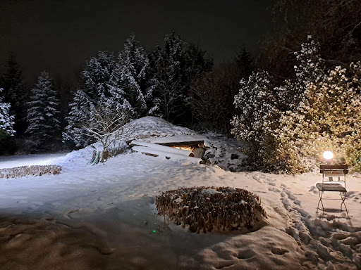 ABER.... Gehst raus haut einen dieser wunderbar angelegte Park um, mit einem Teich, Bäumen, Hecken und einem schönen Alu Pool. Verteilt sind Hütten in denen sich die unterschiedlichen Sauna befinden. Fast macht es den Eindruck, das man im Garten eines 5 Sterne hotel ist. Nun gut im Detail kennt man schon dann das Alter wieder.... Macht nichts... Der Aufgussmeister macht ausgezeichnet Aufguss und wedelt hervorragend. Die wenigen Besucher sind begeistert.