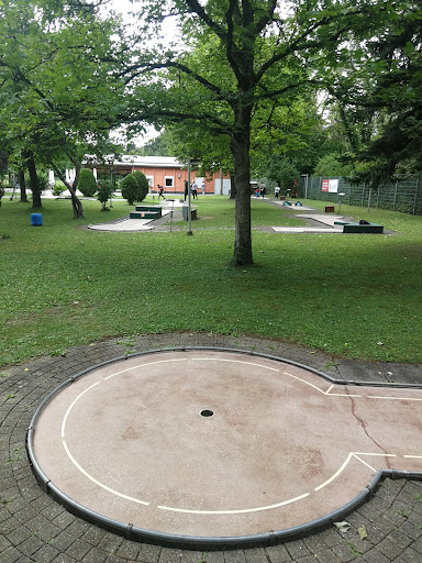 ich gebe hier nur einen Stern, weil ich es muss! Am liebsten hätte ich minus 5 gegeben, war letzte Woche um 18:45 Uhr da, nachdem man mich erst mal hat warten lassen, bis man sein Bier ausgetrunken hat nahm man mir das Geld aus der Hand, sagte mir recht unhöflich, dass sie nur bis 20 Uhr auf hätten und das wars dann auch man ging wider an den Stammtisch zu anderen die da nur saßen und tranken. Der Platz an sich ist ganz ok aber ist auch nix besonderes außerdem ist die Hälfte des Platzes voll mit alten kaputten Bahnen. Um 19:25 Uhr brüllte es dann plötzlich von hinten das wir doch mal zuspielen sollen, da waren wir aber schon bei Bahn 13 und daher gut in der Zeit. Als ich das anmerken wollte kam nur besoffenes Gebrummel vom Stammtisch, nach dieser Aktion wollten wir dann auch zügig da weg, machten schnell und gingen wieder, da hätte der Laden noch 20 min aufgehabt aber die unhöfliche Mitarbeiterin konnte es kaum noch erwarten uns los zu werden. Ich würde nie wieder kommen und erst recht nicht mit Kindern. Es ist auch noch anzumerken das die ganze Zeit während wir da waren ein scheinbar stark angetrunkener Mann mit sich selbst redend von Bahn zu Bahn lief und einen besorgniserregenden Eindruck erweckte. Dies störte dort aber keinen vom Personal, da dies ein Freund der Mitarbeiterin zu sein schien.