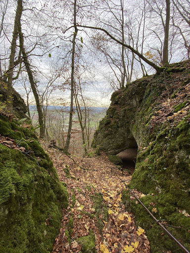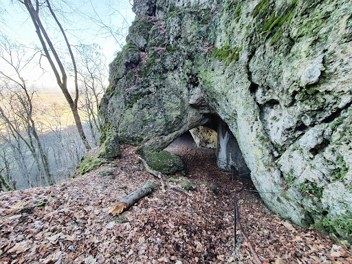 Read moreBeeindruckende, mehrgliedrige Aushöhlung im Fels, in der Überreste menschlichen Lebens gefunden wurden. Zugang über grobe Stufen in einer Felsrinne, mit Geländer gesichert. Vorsicht: viel feuchtes und rutschiges Laub auf dem Pfad. Ausblick ins Tal durch Bäume eingeschränkt. Der Abstieg zur...