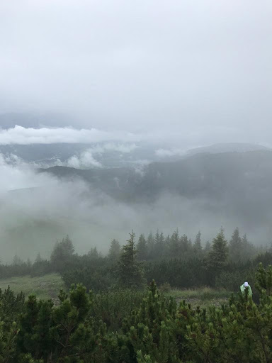 Wir sind dann ein wenig anders heruntergelaufen, weil wir nicht denselben weg zurück gehen wollten. Wir liefen einen Waldweg entlang. Irgendwann kamen wir erst an eine Forststraße die uns nach Eschenlohe geführt hätte. Dies brachte uns nichts, weil es genau die andere Seite vom Berg war. Also gingen wir weiter in den Wald bergabwärts, teilweise steil. Irgendwann kamen wir an einem Weg, der uns zu einem Schild führte. Von dort gingen wir einen ebenfalls nicht leichten Weg 2h zurück in Richtung Wallgau. Durchnässt kamen wir nach 8h in Wallgau wieder an. (4h Aufstieg, 4h Abstieg). Zum Glück hatten wir Regenponchos. Gesamtzeit der Wanderung betrug 8h. Keinesfalls kinderfreundlich und schwer. (Eine Gondel oder eine Hütte gab es nicht).