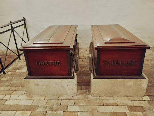 Read moreIn der Fürstengruft ruhen einige Mitglieder des Hauses Sachsen-Weimar und der Dichter Johann Wolfgang Goethe. Die klassizistische Kapelle wurde auf Veranlassung vom Großherzog Karl August vom Hofarchitekten Clemens Wenzeslaus Coudray errichtet und besteht aus einer dorischen Vorhalle mit Säulen, einem bemalten Kapellenraum mit Kuppel und dem Gruftgewölbe mit den Särgen. Hier befinden sich auch die Särge von Goethe und Schiller, aber nur der erste fand hier seine letzte Ruhestätte. Ursprünglich wurde Schiller im Kassengewölbe beigesetzt und seine vermeintliche Gebeine wurden 1827 in die Fürstengruft überführt, aber es handelte sich nicht um die Überreste des Dichters, deshalb ist Schillers...