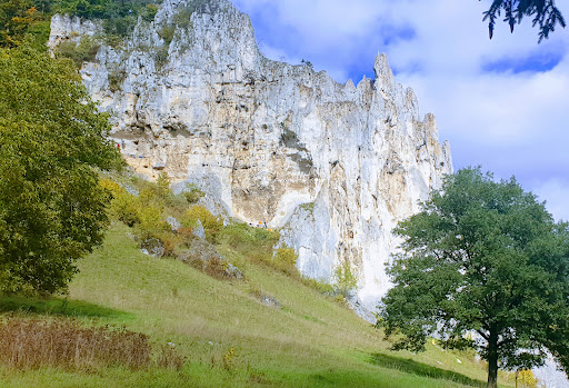 Beliebter Kletterfelsen mit ziemlich abgenudelten Routen. Schöne Aussicht vom Grat aus, der von der Bergseite aus gut zu erreichen ist. Ist aber...