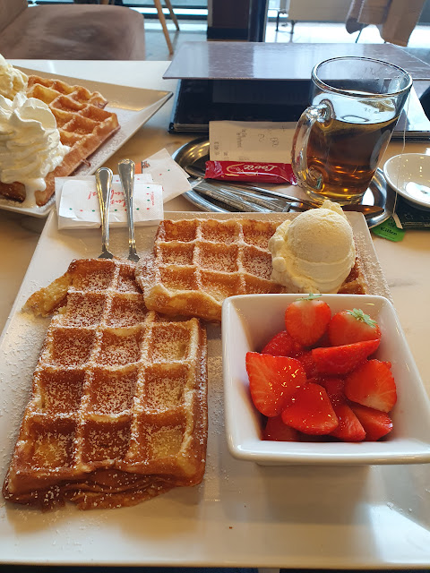 Anschließend haben wir 30 Min. auf eine Waffel und auf ein Eis gewartet.