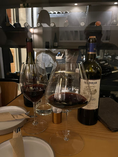 Στο κρασί που είναι ένα κομμάτι με το οποίο έχω ασχοληθεί αρκετά έστω ερασιτεχνικά όντας και κάτοχος πτυχίου οινογνωσίας, είναι ωραίο που υπάρχει επιλογή μισού ποτηριού (75 ml) στο μαγαζί, αλλά 7 ευρώ για μισή μεζούρα σε μια valpolicella ripasso λες και είναι barolo τα λες υπερβολικά. Πήραμε επίσης ως παρέα κι ένα κρασί κόκκινο tannat Ουρουγουάης του 2019 που το είχε στα 90 ευρώ με ~30 ευρώ τιμή λιανικής απ' ό,τι είδα. Το 300% στο κρασί είνα ΟΚ σε ένα εστιατόριο που το κρασί είναι συνοδευτικό αλλά σε ένα wine bar που ο σκοπός είναι ο κόσμος να μάθει και να δοκιμάσει κρασιά το θεωρώ απαράδεκτο και ουσιαστικά κρατάει κόσμο με περιορισμένο μπάτζετ που θέλει να μάθει κρασιά μακριά από τέτοια μαγαζιά και δίνει τη φήμη στο κρασί ως κάτι ελιτίστικο και για λίγους. Κάτι κοντά στο 200% θα ήταν πιο λογικό.