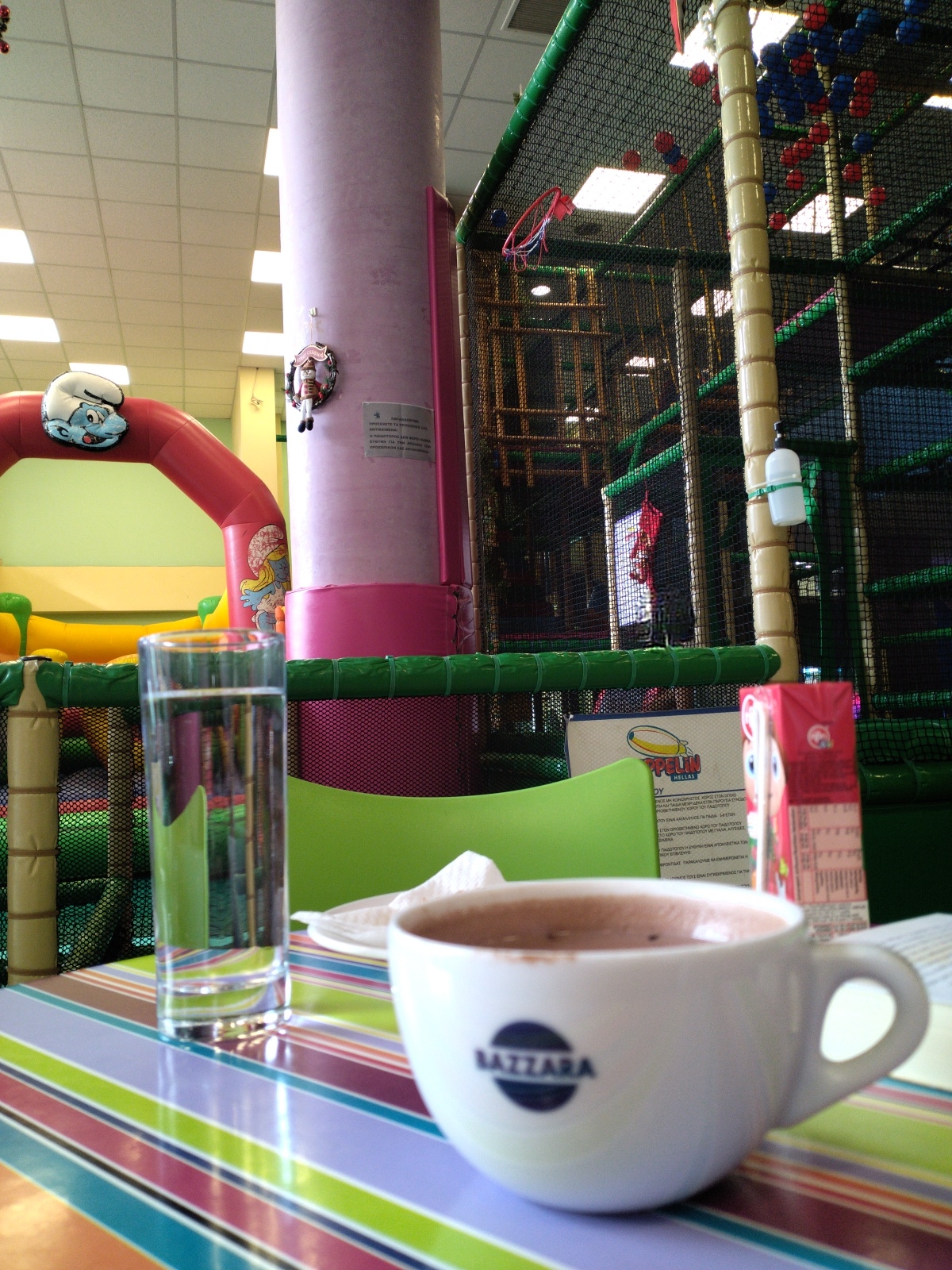 EDIT: Συμπληρώνω απλά ότι τις μέρες και ώρες που έχει πάρτι, η φασαρία και η πολυκοσμία είναι ανυπόφορη. Για παράδειγμα, ακούγονται 2 μουσικές, μία του παιδότοπου και μία του πάρτι που γίνεται στον ημιόροφο. Θα μπορούσε αφού έχει πάρτι να παίζουν τη μουσική του πάρτι μόνο για αυτές τις 2 ώρες που έχει ανιματέρ ή τελοσπάντων την απασχόληση του πάρτι. Αν προσθέσεις τσιρίδες των παιδιών, που είναι αναμενόμενες,...