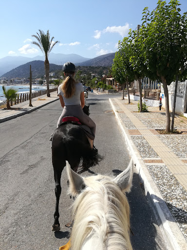 Read moreWe had a wonderful time going on a ride with a group of 5. We where 2 experienced adults and 2 beginners + 1 child (12yrs old). Mr. Nikos took fantastic care of all of us and held the child's horse on a rope during the ride for safety. He genuinely loves his horses 🐴 and cares for them, therefore he requests to not weight more then 100KG as a rider. The ride is a nice blend of landscapes. During the summer season no one is allowed to ride on the beach of Stalida but we passed from the main road to have the nice sea view anyway. The horses are Cretan Georgalidikos. The native horse breed of Crete, they have some Arabic blood and even though they are small they are really powerful. The 1ste time we came unexpectedly to the stables the horse where playing outside together in the paddock. Stalida has a rocky and rough terrain but no worries those Cretan horses have no issues with the rocks. 😁 All the horses looked good and Mr. Nikos will answer any question you might have regarding their health or ages. Fun fact my horse (Kanelo as shown in the picture) is the father of one of the other horses which came with us on a ride. We would...