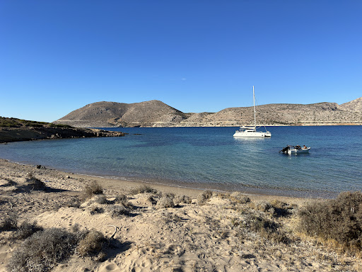 I'm across the island. (I didn't go to the island, I'm just looking at it from the opposite side) The beach here is beautiful. The sea is sandy and the water is very beautiful. Suitable for families with children. There is this island (patroklos)...