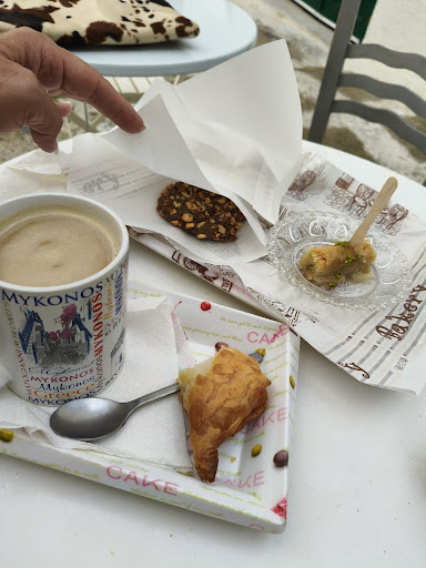 We came across this secret gem in Mykonos..we were looking for a place to relax while having some snacks and lucky to walk pass this hidden cafe. All their pastries are home made and served with the best coffee in town..great hospitality and service that makes you feel at home. They are the best sample of a cafe that is show casting their local produce and delicacies. Came to try their different kinds of baklava, sweets and orange cake and it brings back memories when your grandmother preparing you your favourite food and goodies...highly recommended to visit this place and you won't feel like missing out on the local...