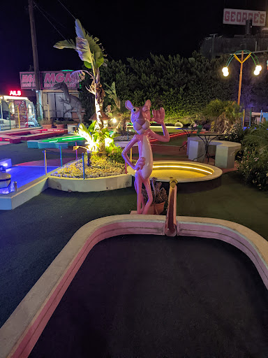 I wish mini golf would be more creative. Looks cool from outside, especially at night, but it's just a lot of straight lines. And they are extremely difficult, some have very narrow gaps you have to get through.