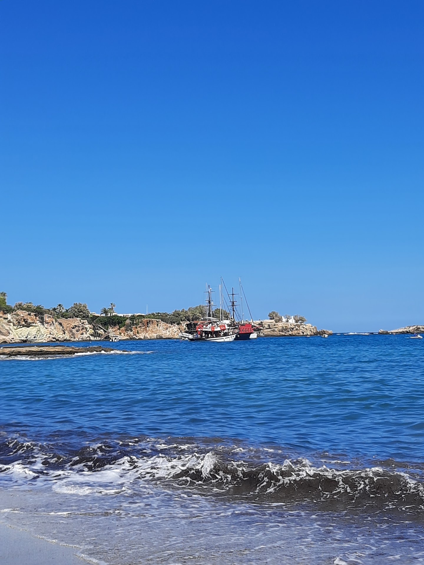 Read moreDieser kleine Strand ist ein kleines Juwel in der Bucht von St George (die kleine Kirche befindet sich ein paar hundert Meter nördlich am 'Zipfel' der Küste. Das Wasser ist klar, die Wellen wegen der Bucht nicht so stark, wie an der Nordküste. Schnorcheln lässt sich ganz gut, wir haben einige Fische gesehen. Die Zuwegung ist etwas hakelig die Steilküste herab, am Ende der Straße (nur einzelne Parkplätze). Der Strand bietet vielleicht 25 Schirme mit Liegen, zu einem Preis von 8 € (Juni 22). Hervorheben kann man die beiden Betreiber hier, Costas und Valentin, die hier einen erstklassigen Service bieten. Ob noch ein paar Liegen aufgebaut werden müssen, man hier ein kühles Getränk oder sogar über Lieferdienst ein Essen organisiert haben möchte, die beiden Herren im besten Alter sind sofort zur Stelle, unaufdringlich und herzlich, immer mit einem Lächeln! Die Preise der beiden sind sehr fair, sie kümmern sich aktiv um die Sauberkeit ihres Strands und geben dem Besucher das gute Gefühl, willkommen zu sein. Wie besinders der Küstenabschnitt ist, zeigt such, dass mehrere Ausflugsschiffe hier täglich ankern und hier für Abwechslung sorgen. Wir selbst hatten eigentlich nicht vor, einen Strand mehrfach zu besuchen, aber zum Abschied sind wir noch einmal...