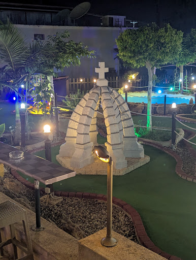 The overall vibe of the mini golf is good. It's a novelty which is nice. It's definitely suitable for all ages. I would say go when it's dark so that it's not too hot. The staff was friendly and helpful. They directed us to our course which was chosen for us so that there wouldn't be a big wait time. We rarely had to wait while playing. Every now and again we stopped to let the couple in front of us play without pressure but because of the course we were on it was fine. The lights were pretty and the course was well laid out. It is however very easy Minigolf. It is not a challenging course so do not expect that. It was a fun experience and I would recommend it if you like Minigolf and are...