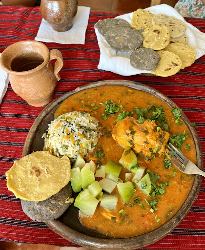 The Mayan cooking class was fantastic - three generations of women led us through the preparation stages of making pulique, a traditional stew, and corn tortillas by hand. First there was Alicia, who officially led the class in Spanish and coordinated all the stages of the preparations. Then there was Alicia's mother Maria, who spoke mostly Kaqchikel, the Mayan language of Santa Cruz, and was dressed in the traditional huipil of the town. She helped us use a massive mortar and pestle to grind a type of chili peppers into roasted tomatoes - hard work! - to use as the base of the stew. Then there was a younger woman who translated everything into English for those who didn't understand Spanish (not sure if she was a family member or from the community). There were only 10 of us in the class, so it was intimate and everyone had the chance to try all aspects of the preparations. My favorite was learning how to make and shape the tortillas. Of course no cooking class would be complete without the chance to eat the fruits of our labor, and it was delicious!